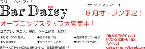 大阪ミナミのコスプレサブカルバー♪リニューアルオープン!従業員募集中!