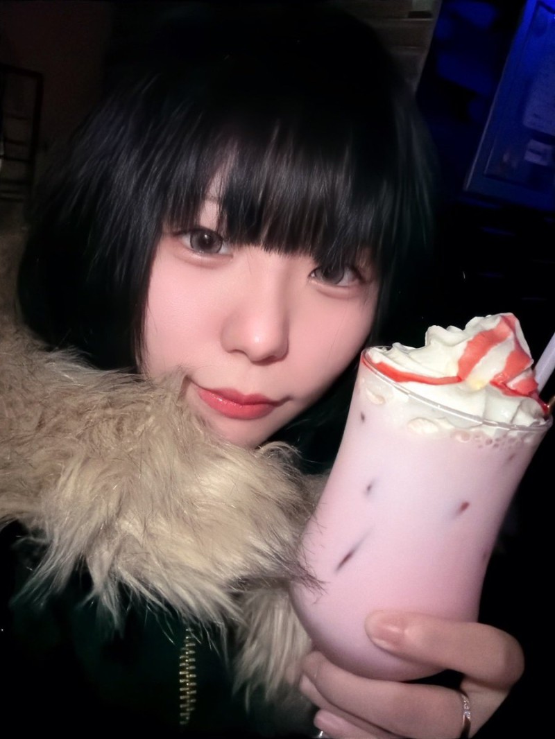 ラムさんとの乾杯はやっぱり🍓🍼でしょ❕って思って前回分のも合わせておっきないちごミルクにしました‼️甘くておいしい🥰🥰🥰