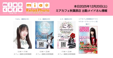 👑本日12月20日(土)のミアカフェ秋葉原店