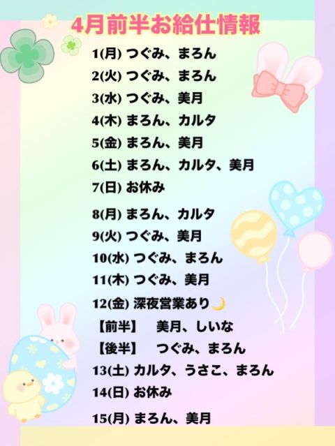 🌸4月前半お給仕情報🌸