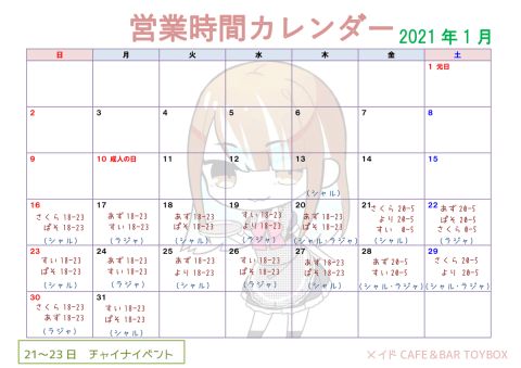 ★2022年1月後半の出勤情報★ 2022年1月後半の出勤情報カレンダーです! いつ営業しているか、誰が出勤しているか、 ぜひチェックしてくださいませ(^^♪ -イベント情報- 21~23日 チャイナ服イベント 他未定 https://t.co/4GSTD4RHNX