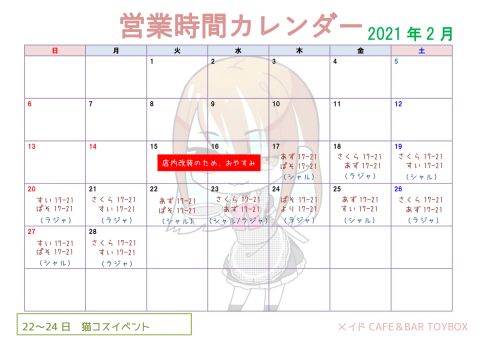 ☆2月の出勤情報☆ 遅れて申し訳ありません(>_<) 2月後半の出勤カレンダーです! 前回途中までの情報でしたがこちらで完成分となります(^^♪ ぜひチェックしてご来店くださいませ! https://t.co/5mxtgWXCUE