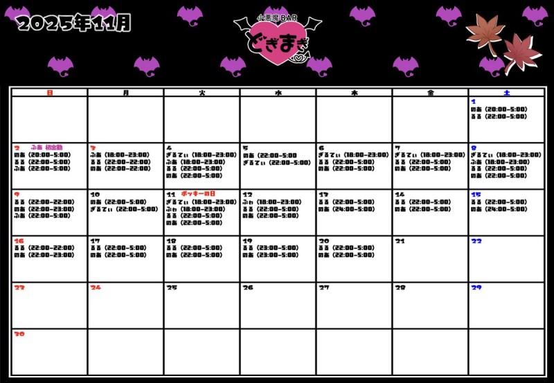 😈11月✞✟出勤予定表😈