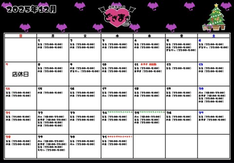 😈12月✞✟出勤予定表😈