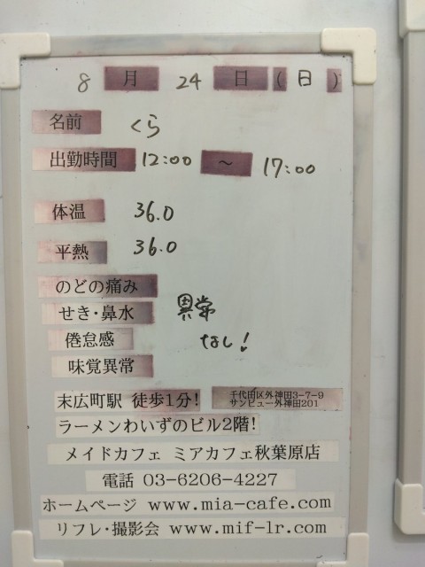 | å¶æ¥æé | âãã¢ã«ãã§æ±äº¬åºïŒã¡ã€ãã«ãã§ïŒhttp://www.mia-cafe.com/ãâ â¡å¹³æ¥ãæïœéãïŒïŒïŒïŒïŒïœïŒïŒïŒïŒïŒ â¡åæã»æ¥æã»ç¥æ¥ãïŒïŒïŒïŒïŒïœïŒïŒïŒïŒïŒ â å®äŒæ¥ããªãïŒ2019幎1æããå®äŒæ¥å»æ¢ïŒ â¡ã©ã¹ããªãŒããŒãéåºã®ïŒïŒåå ãïŒïŒïŒïŒïŒéåºã®å ŽåâïŒïŒïŒïŒïŒã©ã¹ããªãŒããŒ å¶æ¥æ¥ãåºå€ç¶æ³ã«ã€ããŠã¯ãã¡ãã http://pandaland.cutegirl.jp/mif/c_cms_csv/sch_top.php âãã¢ãªã©ïŒãã©ãæ±äº¬åºïŒæ®åœ±äŒïŒãªãã¬ïŒhttp://www.mif-lr.com/ãâ â¡å šæ¥ãïŒïŒïŒïŒïŒãïŒïŒïŒïŒïŒãã§ãããªã©ã¯ãŒãŒã·ã§ã³åºå€ã¹ã¿ãããããæé垯ã®ã¿å¶æ¥ã§ãã â å®äŒæ¥ã¯äžå®äŒïŒåºå€ã¹ã¿ãããããæé垯ã®å¶æ¥ïŒ â¡æçµåä»ãéåºã®ïŒïŒåå ãïŒïŒïŒïŒïŒéåºã®å ŽåâïŒïŒïŒïŒïŒïŒïŒïŒïŒïŒïŒè¿ã«æœè¡æéãçµããã³ãŒã¹ïŒ â»é«æ ¡çäžå¯ âæ·±å€å¶æ¥ã«ã€ããŠã¯ãå ¬åŒãµã€ãå³äžã® http://market.chu.jp/schedule1/sche37.cgi ãã¢ã°ã«ãŒãç·åã¹ã±ãžã¥ãŒã«ïŒïŒ°ïŒ£ã»ã¹ããïŒ http://market.chu.jp/schedule1/sche37.cgi?dm=1 ãã¢ã°ã«ãŒãç·åã¹ã±ãžã¥ãŒã«ïŒã¬ã©æºåž¯ïŒ ãã芧ãã ãããåç¥æ¥ã®ã¿å¶æ¥ãšãªããŸããåç¥æ¥ä»¥å€ã¯æ·±å€å¶æ¥ããããŠãããŸããã æ·±å€å¶æ¥å¯Ÿè±¡æ¥ãïŒïŒïŒïŒïŒãç¿æïŒïŒïŒïŒïŒïŒ¬ïŒïŒ¯ïŒïŒïŒïŒïŒïŒ | ||||||||||||||