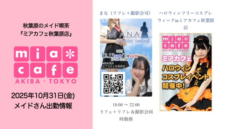 | å¶æ¥æé | âãã¢ã«ãã§æ±äº¬åºïŒã¡ã€ãã«ãã§ïŒhttp://www.mia-cafe.com/ãâ â¡å¹³æ¥ãæïœéãïŒïŒïŒïŒïŒïœïŒïŒïŒïŒïŒ â¡åæã»æ¥æã»ç¥æ¥ãïŒïŒïŒïŒïŒïœïŒïŒïŒïŒïŒ â å®äŒæ¥ããªãïŒ2019幎1æããå®äŒæ¥å»æ¢ïŒ â¡ã©ã¹ããªãŒããŒãéåºã®ïŒïŒåå ãïŒïŒïŒïŒïŒéåºã®å ŽåâïŒïŒïŒïŒïŒã©ã¹ããªãŒããŒ å¶æ¥æ¥ãåºå€ç¶æ³ã«ã€ããŠã¯ãã¡ãã http://pandaland.cutegirl.jp/mif/c_cms_csv/sch_top.php âãã¢ãªã©ïŒãã©ãæ±äº¬åºïŒæ®åœ±äŒïŒãªãã¬ïŒhttp://www.mif-lr.com/ãâ â¡å šæ¥ãïŒïŒïŒïŒïŒãïŒïŒïŒïŒïŒãã§ãããªã©ã¯ãŒãŒã·ã§ã³åºå€ã¹ã¿ãããããæé垯ã®ã¿å¶æ¥ã§ãã â å®äŒæ¥ã¯äžå®äŒïŒåºå€ã¹ã¿ãããããæé垯ã®å¶æ¥ïŒ â¡æçµåä»ãéåºã®ïŒïŒåå ãïŒïŒïŒïŒïŒéåºã®å ŽåâïŒïŒïŒïŒïŒïŒïŒïŒïŒïŒïŒè¿ã«æœè¡æéãçµããã³ãŒã¹ïŒ â»é«æ ¡çäžå¯ âæ·±å€å¶æ¥ã«ã€ããŠã¯ãå ¬åŒãµã€ãå³äžã® http://market.chu.jp/schedule1/sche37.cgi ãã¢ã°ã«ãŒãç·åã¹ã±ãžã¥ãŒã«ïŒïŒ°ïŒ£ã»ã¹ããïŒ http://market.chu.jp/schedule1/sche37.cgi?dm=1 ãã¢ã°ã«ãŒãç·åã¹ã±ãžã¥ãŒã«ïŒã¬ã©æºåž¯ïŒ ãã芧ãã ãããåç¥æ¥ã®ã¿å¶æ¥ãšãªããŸããåç¥æ¥ä»¥å€ã¯æ·±å€å¶æ¥ããããŠãããŸããã æ·±å€å¶æ¥å¯Ÿè±¡æ¥ãïŒïŒïŒïŒïŒãç¿æïŒïŒïŒïŒïŒïŒ¬ïŒïŒ¯ïŒïŒïŒïŒïŒïŒ | ||||||||||||||