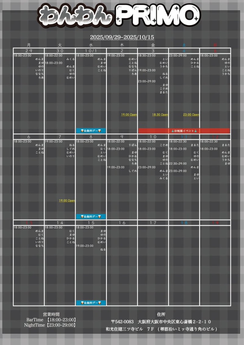 営業時間 | 月~日 18~23 金、土 23~29(不定期) | ||||||||||||||