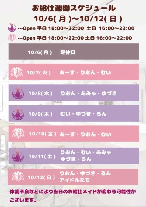 【お給仕週間スケジュール】