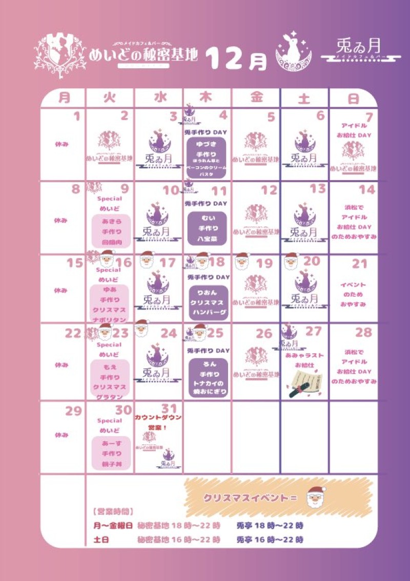 クリスマスイベメニューご予約はDMから、当日注文の特典は後日渡しです。