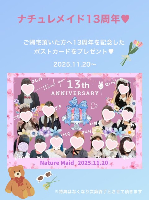 ナチュレメイド13周年を記念してご帰宅頂いた方へ ポストカードをプレゼントしております🧸🍎