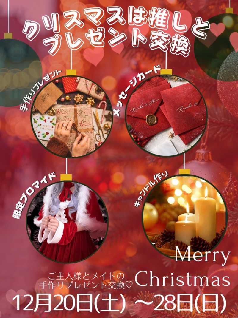🎅♡クリスマスイベント開催中♡🎄 メイドちゃん達と楽しいクリスマスを過ごしちゃいましょう🎄.* メッセージカードやプレゼント作り、キャンドル作りまで!!! 楽しいイベントメニュー盛り沢山♥️ 是非遊びに来てください😊✨ https://t.co/w9wTfgtYoF