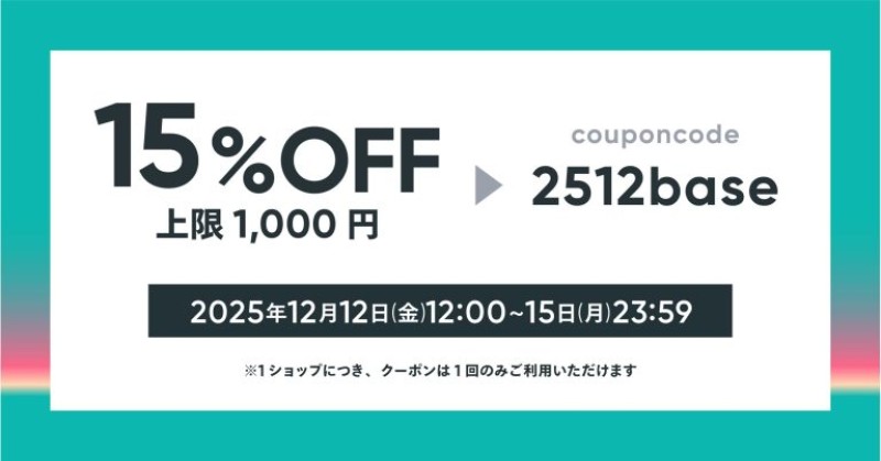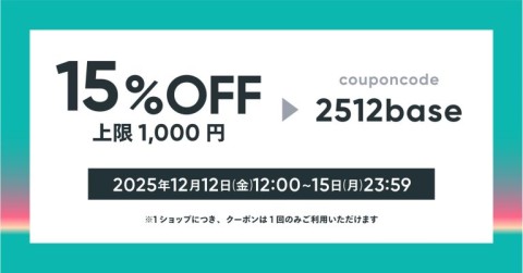 ã12/12ïœ15éå®ã15%OFFã¯ãŒãã³ãã¬ãŒã³ãïŒ#BASEæè¬ç¥ https://t.co/fgVZuOb3z8