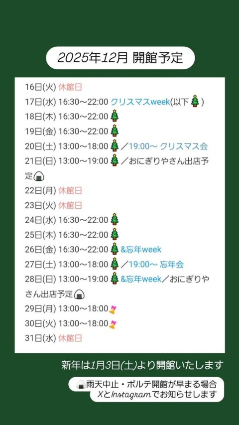 | å¶æ¥æé | æç« äŒé€šæ¥ïŒå¹³æ¥ 15:30ïœ22:00ïŒåæ 13:00ïœ21:00ïŒæ¥æ 13:00ïœ19:00 | ||||||||||||||