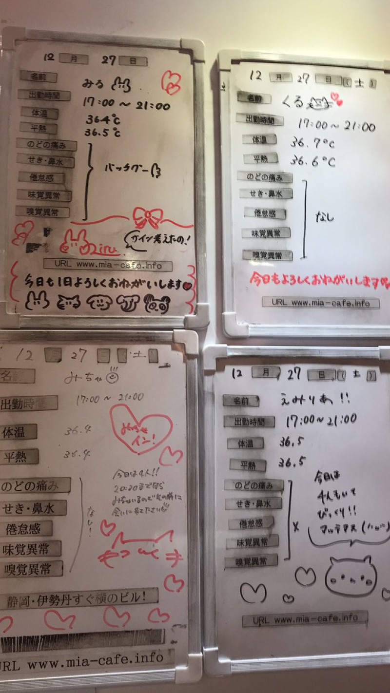 | å¶æ¥æé | é岡åºã¯åºå€ã¹ã¿ãããããã°å¶æ¥ã§ãïŒ åºæ¬çã«ã12æïœ22æãå¶æ¥æéã§ãïŒ âé岡åºã®ãã€ãã¿ãŒã@shizuokamaidsan https://twitter.com/shizuokamaidsan âãã¢é岡åºã®å¶æ¥ææ¥ïŒå¶æ¥æéâ âæãæšã14:00ã22:00(æçµåä»20:00) âéææ¥ã12:00ã22:00(æçµåä»21:00) âåã»æ¥ã»ç¥ã12:00ã22:00(æçµåä»21:00) å¶æ¥æéå€ã¯ãªã³ã©ã€ã³äºçŽã«ãŠãé¡ãããããŸãã ïŒ°ïŒ£ã»æºåž¯å ±éãâãhttp://m-kanzume.moo.jp/yoyaku2/user.cgi âãã¢ã¬ã€ãåºå€ç¶æ³â ã¹ããã»ïŒ°ïŒ£ãâãåŸæ¥å ¬éäºå® â é岡åºã¹ã¿ããã«ãããã¢ç²åºåºã§ã®ã¡ã€ãã«ãã§ãªã¢ã«å¶æ¥â âäžå®æ ããµã€ãã«ãŠã確èªãã ããã ãhttp://market.chu.jp/schedule1/sche37.cgi | ||||||||||||||